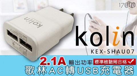 Kolin 歌林-2.1A AC轉USB充電器(KEX-SHAU07)(買一送一) 討論,推薦,開箱,CP值,熱賣,團購,便宜,優惠,介紹,排行,精選,特價,周年慶,體驗,限時
